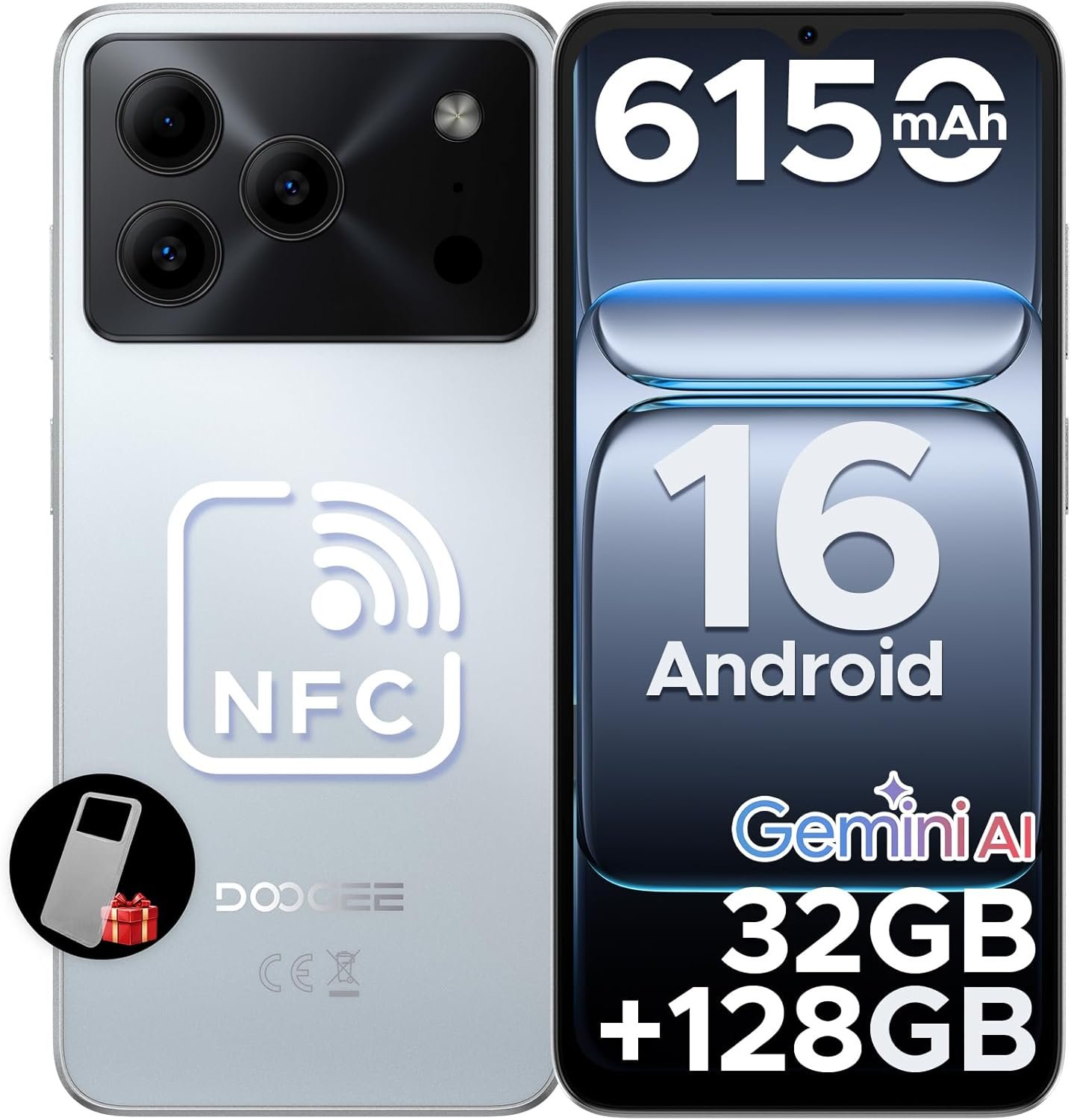 DOOGEE Note 56 Pro Android 16 Unlocked Phone with Gemimi AI,32GB+128GB/2TB Cell Phone,6150mAh Battery,6.56”HD+90Hz IPS,Dual SIM Octa Core Smartphone,Dual Camera/8.45mm Ultra-Slim/NFC/OTG/Face ID