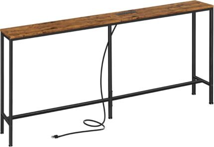 MAHANCRIS Console Table, Narrow Sofa Table, 43.3” Entrance Table with Power Station, Behind Couch Table, Simple Style, for Living Room, Hallway, Entryway, Foyer, Rustic Brown and Black CTHR112E01